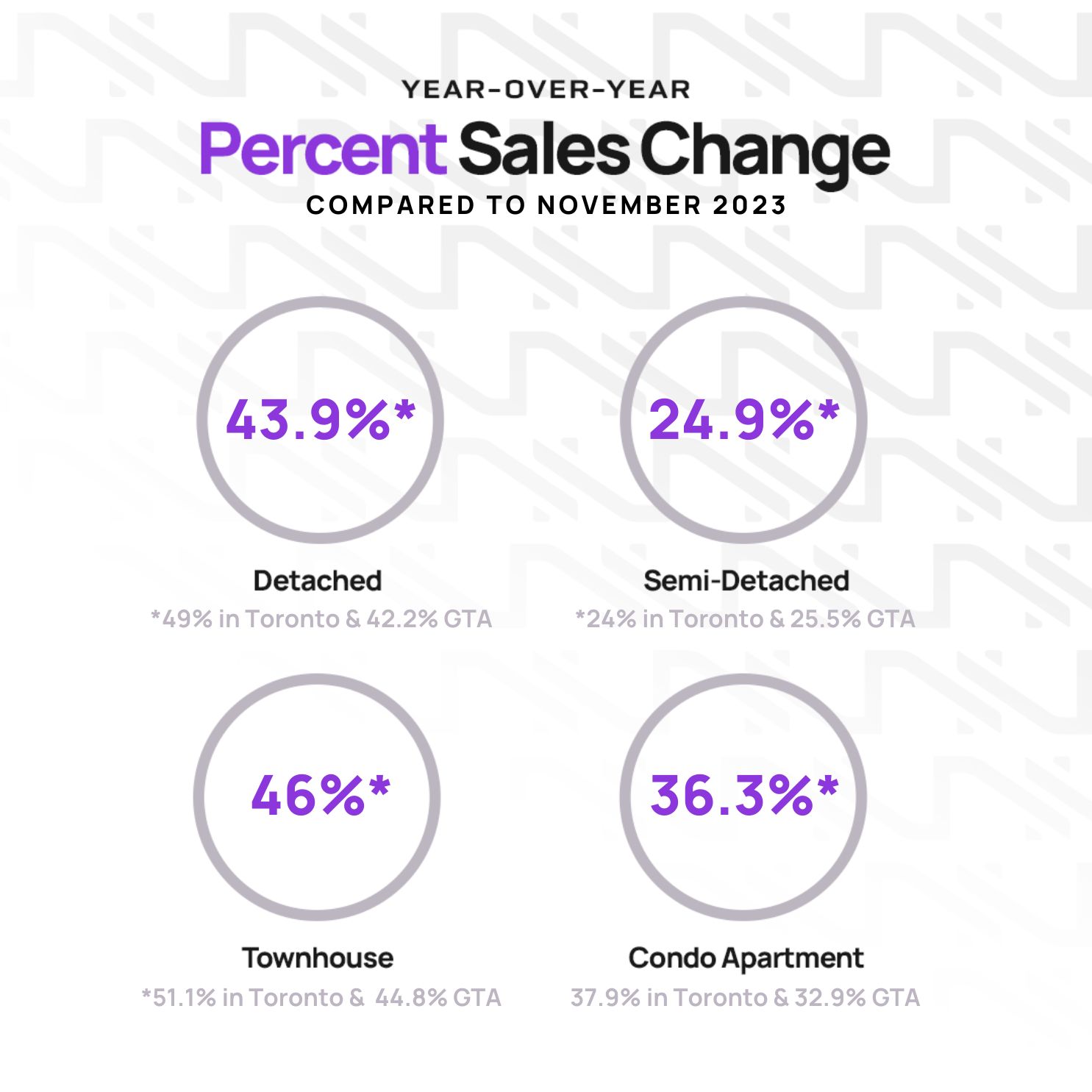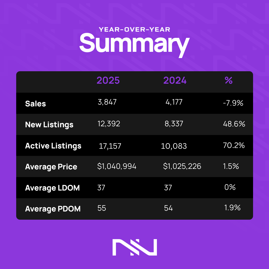 Most people expected prices and sales to soar once we started seeing interest rate drops. Many sellers expected buyers to just fly back to the market once rates started to drop. That didn't necessarily happen. Over the month of November, we saw a huge increase of 30% in the number of active listings on the Market.