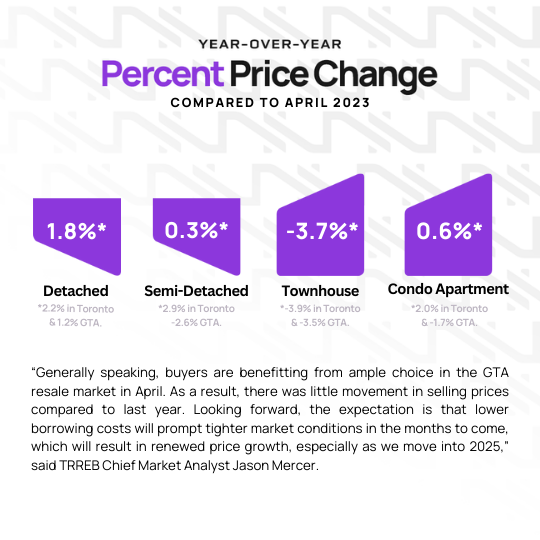 “As we move through 2024, an increasing number of buyers will re-enter the market with adjusted housing preferences to account for higher borrowing costs. In the second half of the year, lower interest rates will further boost demand for ownership housing. First-time buying activity will also be a contributing factor, as many renters look to trade high monthly rents for a long-term investment in which they can live and build equity,” said TRREB Chief Market Analyst Jason Mercer.