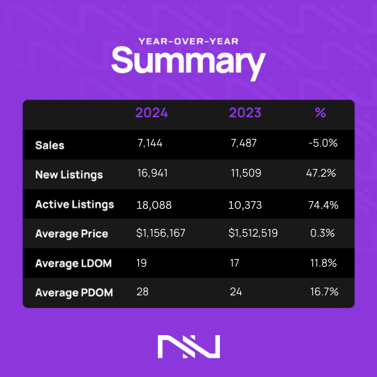 April 2024 home sales were down in comparison to April 2023, when there was a temporary resurgence in market activity. New listings were up strongly year-over-year, which meant there was increased choice for home buyers and little movement in the average selling price compared to last year.